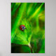 Besouro vermelho em uma folha verde na natureza com textura delicada