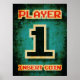 Jogador 1 Inserir Moeda, Jogador 1 Pressionar Iniciar retroceder o estilo do jogo de jogos de vídeo. Um poster vintage engraçado de tipografia com jogos engraçados cita poster de jogos de arte em pixel, estilo de design de 8 bits para jogadores, nerd e geeks.