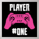 Este design apresenta o texto em negrito "JOGADOR #ONE" em uma fonte branca angustiada e no estilo de bloco.É um gráfico divertido, inspirado por jogadores que celebra ser o jogador principal, perfeito para os entusiastas dos jogos. 🎮