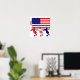 Três Jogadores de Futebol Americano Silhuetted em frente à bandeira Americana. O nome do país EUA está do lado. Presente de excelente para os adeptos de futebol americanos