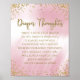 Sinal de jogo de chá de bebê de pensamentos de fralda cor-de-rosa e dourado com fundo brilhante rosa e dourado. Basta adicionar o texto de sua escolha no estilo de fonte e cor que preferir. Esses sinais de jogo de chá de bebê cor-de-rosa e dourado ficam ótimos em uma moldura decorativa na mesa do seu evento.