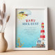 Sinal de chá de fraldas náutico bonito para o jogo Baby Sock Hunt. A design apresenta um farol com gaivota e estrelas-do-mar sobre as rochas; uma âncora no oceano e o sol vestindo um chapéu que olha pelo telescópio. Baby Sock Hunt está escrito em tipografia decorativa e a design tem uma história colorida de azul, vermelho e branco. Se você quiser combinar produtos, por favor navegue na minha Ahoy, é uma coleção Boy ou me mande uma mensagem para adicionar as modelos de design que você precisa.
