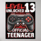 Nível 13 Desbloqueado 13 de Jogo de Vídeo do Adolescente Oficiente no Aniversário