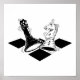 Uma ilustração a preto e branco de um cavaleiro a levar uma rainha num jogo de xadrez. Uma ilustração a preto e branco para pessoas que adoram jogar xadrez e outros jogos de conselho.