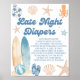Adicione diversão ao seu chá de fraldas com este Bebê personalizado no Conselho Fralda noturno Poster! Perfeito para o bebê com ideias de chá de fraldas conselho, ajustado lindamente com um tema de chá de fraldas costeiro, tema de chá de fraldas de praia ou tema de chá de fraldas oceânico. Ideal para um chá de fraldas de verão, este jogo bonito e interativo adiciona riso à sua celebração. Excelente para quem procura temas únicos de chá de fraldas de verão e ideias de chá de fraldas de verão que os hóspedes se lembrarão!