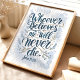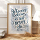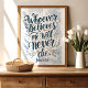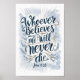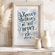 Inspire fé e esperança com esta elegante impressão de arte apresentando o poderoso verso de John 11:26. A belíssima citação feita à mão em tons de azul e ouro, adornada com delicados sotaques florais, cria um design sereno e elevador. Perfeito para adicionar um toque de inspiração espiritual à sua casa, escritório ou espaço de oração.