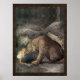 Ilustrador infantil e artista de conto de fadas da Suecia, John Bauer pinta a Princesa Bella e o Urso na Floresta. Essa garotinha encontra uma grande criatura de animais florestais. Arte sueca de presentes escandinavos em cores marrom, cinza e ouro amarelo.