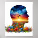 Mergulhe em um mundo de imaginação e tranquilidade com este deslumbrante design que apresenta uma silhueta masculina preenchida por uma vibrante paisagem interior. Um pôr do sol deslumbrante sobre um campo de flores silvestres coloridas, árvores distantes e pássaros em voo evocam uma sensação de paz, beleza e introspecção. Esta obra de arte é perfeita para aqueles que apreciam o bem-estar mental, a beleza da natureza, a atenção plena ou simplesmente uma peça visualmente impressionante e imaginativa. Ideal para arte de parede, vestuário, canecas e presentes que inspiram contemplação e serenidade.