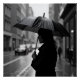 Photographie en noir et blanc. Jeune femme sous un parapluie un jour de pluie