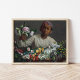 Jovens mulheres com peônias (1870) pelo artista impressionista francês Fré dé ric Bazille. Arte original é uma pintura a óleo sobre canvas que representa uma mulher negra com um monte de flores exuberante. Use as ferramentas de design para adicionar texto personalizado ou personalizar a imagem.
