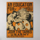 Um Tank Corps recrutando poster da Primeira Guerra Mundial mostrando um homem fazer consertando um tanque.