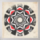 Muro de caleidoscópio pendurado poster. Padrões fractais, vermelho, preto, cinza, branco. Vintage, sentimento de aflição.