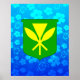 O Kanaka Maoli é o Casaco de Braços Havaiano com a Real Kahili, o padrão real havaiano, atravessado por dois remos. Os paddles representam as tradições que viajam no oceano dos havaianos e a sua Lei do Paddle Esplinterizado (Kānāwai Māmalahoe). Fundo azul oceânico de flores de hibisco azuis e tartarugas marinhas honugas.