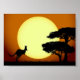 Esta ilustração mostra uma silhueta de um canguru, pulando por aí em pastagens durante o pôr do sol.