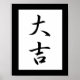 Póster Kanji Japonês para uma Excelente Sorte - Daikichi