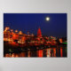 Uma lua de cheio acrescenta seu brilho ao já brilhante Centro de Compro de Kansas City, Missouri, Country Club Plaza durante a temporada de festas. As reflexões das luzes e do martelo da lua de cheio em Brush Creek.