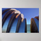 O sol do final da tarde lança sombras ousadas no icônico Kauffman Center for the Performing Arts in centro, Kansas City, Missouri, no dia 16 e na Broadway. O centro fica perto do Power and Light Center, do Sprint Center e do Crossroad Arts District. A Sinfonia de Kansas City, a Ópera Lírica de Kansas City e o Balé de Kansas City atuam nos locais de atuação do centro. Moshe Safdie, um modernista prêmio vencedor, foi o arquiteto líder. Outros na equipe do design foram o engenheiro acústico Yasuhisa Toyota, consultor de teatro Richard Pilbrow, e a empresa de engenharia Arup. A empresa local BNIM era o arquiteto associado. O principal contratante era J.E. Dunn Construction Group de Kansas City. A estrutura de 285 mil pés quadrados (26.500 m2) era uma das estruturas mais complexas do mundo para design e construir e estava em construção por quase cinco anos. O exterior do centro consiste em duas meias-cascas simétricas de arcos verticais concêntricos que se abrem em direção ao sul. Cada carapaça abriga um local de desempenho acústicamente independente, embora a área de bastidores seja compartilhada. A fachada sul do Centro é feita inteiramente de vidro.