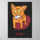 A kawaii orange cat with a surprise for you. "What a cute mouse in its mouth!" you say. Sure, it's a dead mouse, but look at how proud he looks! Even killer cats can be kawaii! Let's just ignore the blood on its fur... Or the ominous black background. A funny poster for cat lovers who know cats aren't just family friendly mascots.