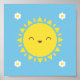 Feliz sol e margarida em um fundo azul do céu para dias ensolarados de verão.