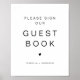 Este cartaz do casamento "assine nosso livro de convidados", modelo, apresenta uma fonte serif limpa e uma design minimalista moderna. Altere facilmente as fontes, as cores da fonte e a cor do plano de fundo para corresponder ao estilo do evento. A combinação simples de cores preto e branco faz dela a adição perfeita a qualquer evento. Use este poster para sua recepção de casamento, chá de panela, chá de casais, etc.
