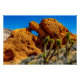 A beautiful red rock formation looking like a large turtle kissing another rock. Taken in the Whitney Pocket area of Gold Butte National Monument. Bright blue sky in the background and green Joshua trees in the foreground. A gorgeous day and fantastic rock formations in the American Southwest.