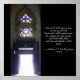 A poster mostra a vista da porta aberta da igreja — foto tirada em Tours, França. A escritura é tirada de Matthew 7:8 e é a Versão do Novo Rei James.