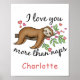 Poster bonito é adorado com uma preguiça adorável. Esta é a arte perfeita para o quarto de uma menina e faz um presente maravilhoso para uma filha, neta e sobrinha.