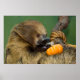 Esta imagem mostra uma preguiça pendurada em um galho enquanto segurava uma pequena abóbora. Os dentes das preguiças crescem continuamente, e têm de ser vestidos por material vegetal para evitar que fiquem demasiado longos. Para compensar a falta de dentes afiados, eles têm endurecido lábios que abrem e plantam folhas. As preguiças-de-coleira-sul consomem principalmente vegetação, incluindo bagas, folhas, galhos pequenos e frutas. | Smithsonian e Smithsonian são marcas registradas detidas pela Smithsonian Institution.
