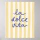 Este poster La Dolce Vita apresenta textos manuscritos e um fundo listrado amarelo que lembra os limões de um verão italiano. La Dolce Vita é uma frase italiana que significa "a vida é doce". Se você está procurando por estética, arte de virada no verão, você vai adorar esta impressão. Esta poster de tendências irá personalizar a sua sala de jantar ou cozinha e dar-lhe caráter e calor. Vincular suas paredes com trabalho de arte puxa um espaço junto fazer que parece completo. Cores utilizadas: azul, amarelo