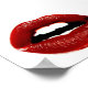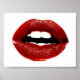 Poster de parede de lábios vermelhos em um fundo branco. Batom vermelho brilhante batendo com dentes visíveis. Adicione a redação quando necessário. Este design vem no tamanho indicado apenas.