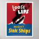 Vintage, poster da Segunda Guerra Mundial, alerta para o descuido discurso sobre movimentos de navios e o risco de espionagem e guerra de torpedos.