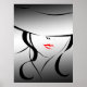 Poster De Arte Preta E Branca. Retrato de uma mulher de chapéu.