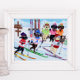 Labradores de esqui nórdico pintando Impressão / Poster para Mães de Labrador! Feliz cão Labrador Retriever gosta de esquiar no Labrador Rico Ski Resort!! Black Labrador, Chocolate Labrador, Yellow Labrador estão todos pintados na foto. Eles realmente adoram neve e esporte de inverno. Colorida e alegre. Pintado por Naomi Ochiai. Bonitos presentes para a casa do amante do Labrador. Dons de diversão de excelente para você também.