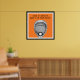 Poster de goleiro de lacrosse motivacional, com lax stick em fundo laranja.
