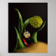 Uma jovem joaninha se relaxa contra seu favorito (dandelion) com um grande sorriso em seu rosto. Mostrada contra um fundo de gradiente preto. O tamanho do poster é 14,92" x 19,04".