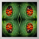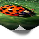 Pequena joaninha bonita se posando em uma folha de abstrato de fechamento criada da minha foto original. Fotografia natural de Susan.