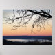 Este poster de viagens de fotografia de arte mostra a vista de uma colina ao sul do lago Cayuga, o mais longo dos lagos glaciais de Dedos do centro de Nova Iorque. A cidade de Ithaca fica no extremo sul. É o lugar perfeito para ver este pôr do sol que respira. O céu brilha com cores brilhantes de laranja, rosa, amarelo, creme, azul e violeta. Colinas ensilhadas na costa leste. Um galho de baixo nível domina o primeiro plano e enquadra esta linda cena.