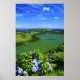 Furnas Lake com hidrangeas no primeiro plano. Este lago situa-se na ilha de São Miguel, Açores, Portugal.