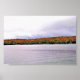 Uma vista colorida à volta do lago numa manhã calma de outono. Lindas árvores num arco-íris de cor no lago Genebra, Wisconsin. Foto: outubro de 2014.