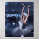 Ballerina como Odette a princesa branca do cisne branco do lago Swan balé clássico com fundo azul turvo de lago e cisnes florestais, ilustração