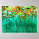 A partir de uma pintura de aquarela original de um lago com lilípidos. Arte serena e calmante verde. Pintura de arte com cores verdes modernas.