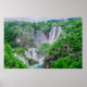 Pintura a óleo de grandes cachoeiras no Parque Nacional dos lagos de Plitvice, Croácia. Cascata de duas grandes cachoeiras no verão. Paisagem de cascata de floresta nas montanhas.