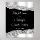 Este elegante e glamouroso e doce sinal de boas-vindas apresenta lágrimas cintilantes prateadas em fundo preto. O texto combina o script manuscrito e as fontes sans serif modernas para um aspecto elegante e sofisticado.