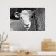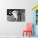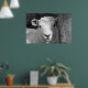 Um belo design fotográfico preto e branco de um carneiro muito bonito.