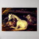 Poster com a pintura de Sir Edwin Henry Landseer de uma égua árabe e seu companheiro, cachorros persa, e macacos dentro de uma tenda árabe. Um presente de excelente para entusiastas de cavalos e colecionadores de arte ingleses.