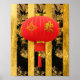 Poster Lantera Vermelha Chinesa, Dourada Preta