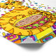 Decorem suas paredes em estilo com este poster único e colorido de arte popular. Nesta trabalho de arte engraçada e caprichosa, este doce gato de mesa laranja senta sobre uma mesa coberta por uma legal toalha de abstrato-arte moderna, com sua cauda enrolada em torno de uma xícara decorativa cheia de um belo e quente cappuccino. Toda a cena ocorre sobre um fundo lúdico com formas geométricas multicoloridas.