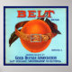 Etiqueta de fruta para laranjas da Belt Marca na Califórnia.