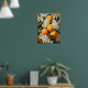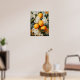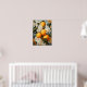 Imagem bonita e nítida de laranjas, flores de laranja e verde nesta poster.