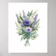 Uma bela buquê de lavanda, flores roxas, eucalipto e verde. Impressão de Aquarela